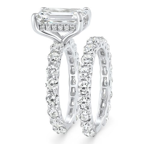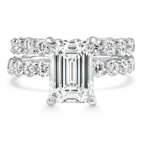 Certified 7.74Ct Emerald Diamond Side Halo Engagement Ring Set 14k Lab Grown