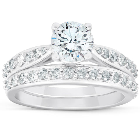 1 3/4Ct Diamond Engagement Matching Wedding Ring Set 14k White Gold