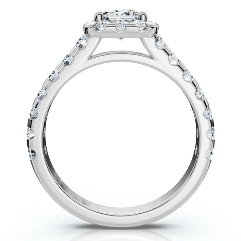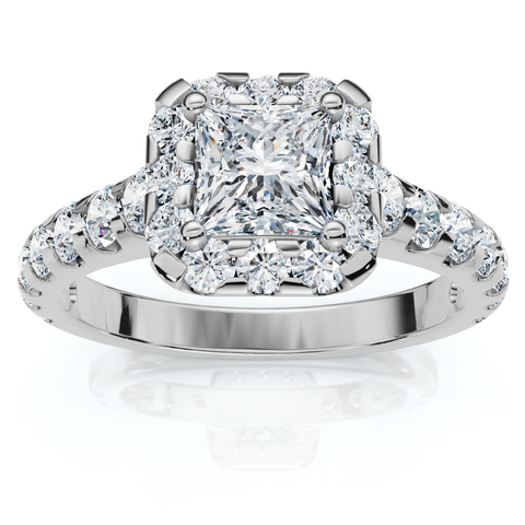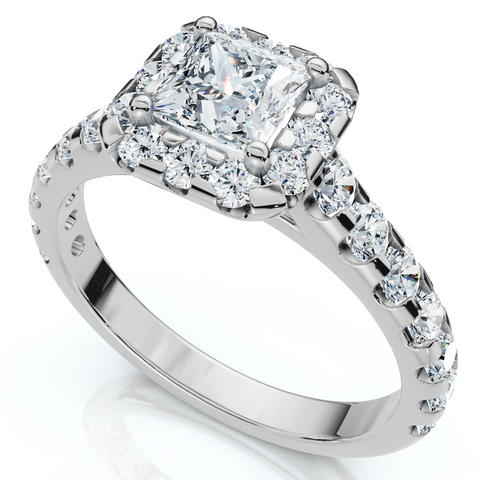 Princess Cut Diamond Engagement Ring 1 1/10 Ct Halo Band 14k White Gold