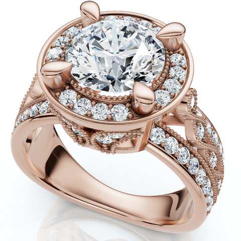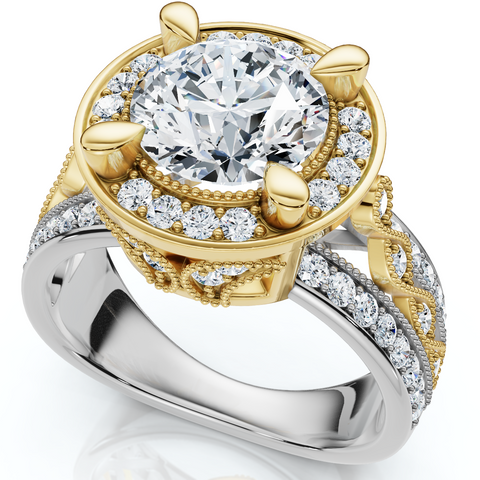 Vintage Filigree Diamond Halo Engagement Ring 14k Two-Tone Gold