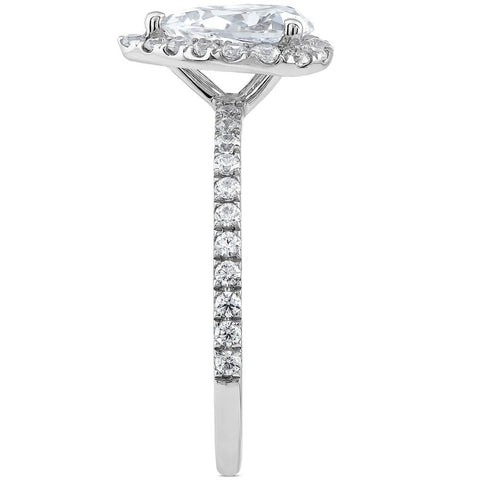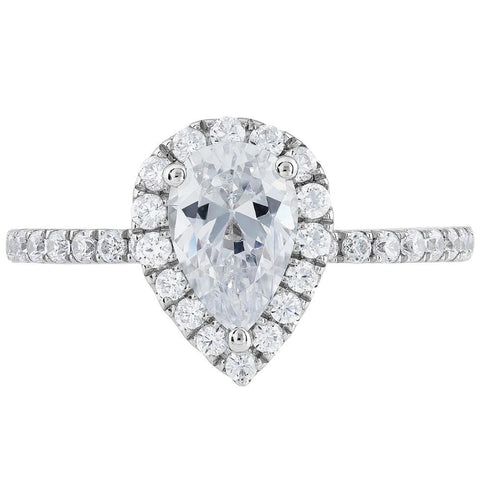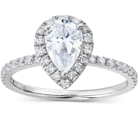 1 1/3Ct TW Pear Shape Halo Diamond Engagement Ring 14k White Gold Lab Grown