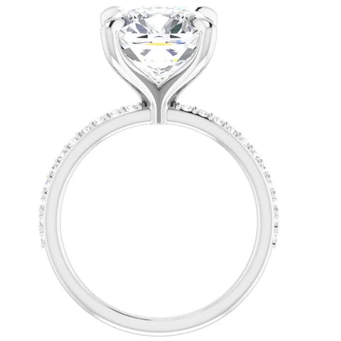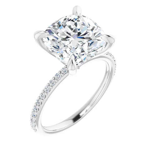 3 1/2 Cushion Moissanite and Diamond Engagement Ring 14k White Gold