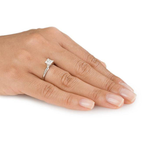 1ct Solitaire Princess Cut Diamond Engagement Ring 14K White Gold