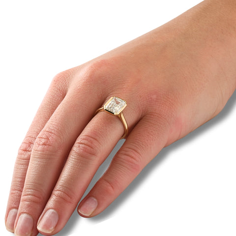 3Ct Emerald Cut Bezel Solitaire Diamond Engagement Ring 14k Gold or Pt Lab Grown