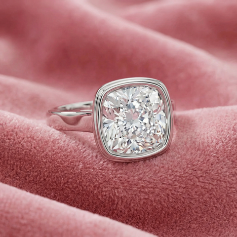 Ceritifed 4Ct Eloise Cushion Cut Bezel Set Diamond Engagement Ring 14k Gold Lab