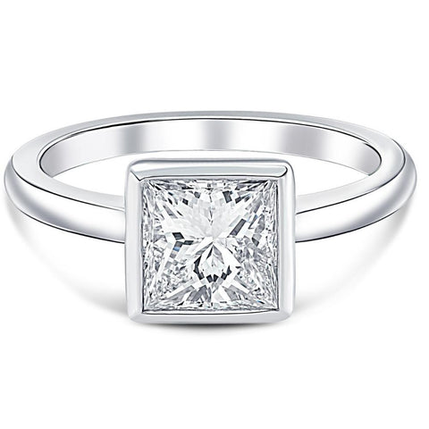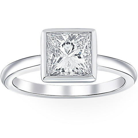 2 Ct Princess Cut Diamond Solitaire Bezel Engagement Ring Lab Grown White Gold