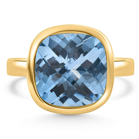 Cushion Blue Topaz Alexa Bezel Ring 14k Yellow Gold