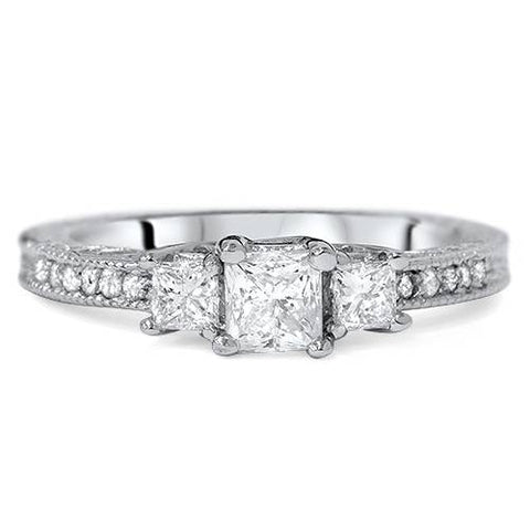 1 1/4ct Vintage Three Stone Princess Cut Diamond Engagement Ring 14K White Gold
