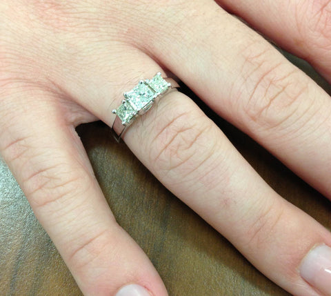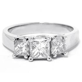 1ct Three Stone Princess Cut Diamond Engagement Ring 14K White Gold
