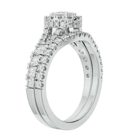 1 1/4Ct Oval Halo Diamond Engagement Wedding Ring Set in White or Yellow Gold