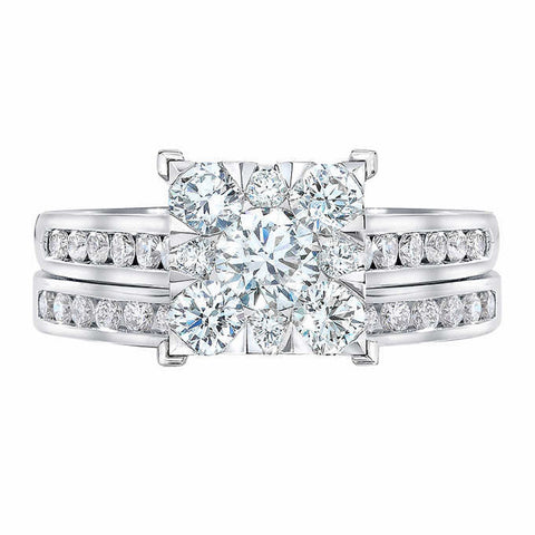 1 3/4 Ct Diamond Princess Cut Framed Engagement Wedding Ring Set 10k White Gold