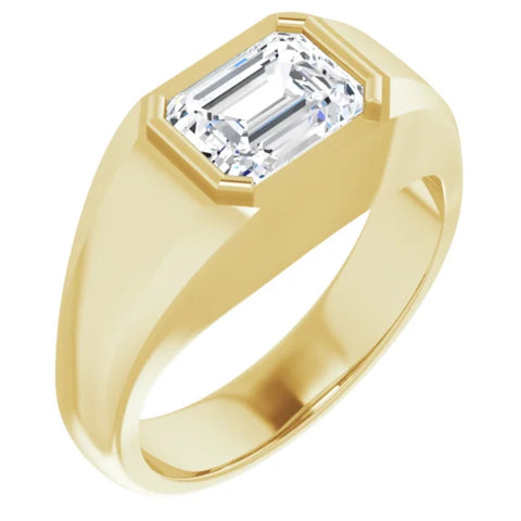 1 3/8Ct Emerald Cut Solitaire Men's Bezel Ring in 14k Gold Lab Grown