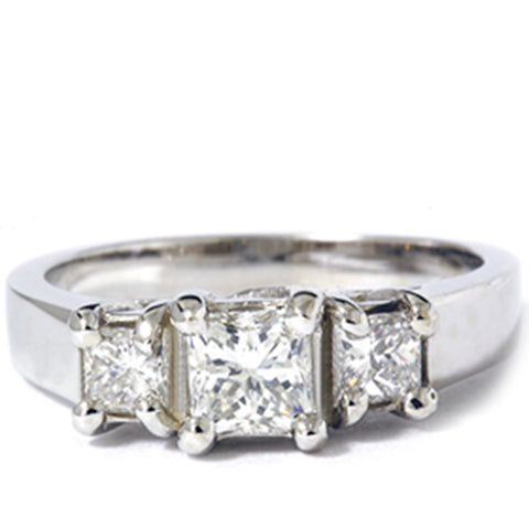 1ct Three Stone Diamond Ring 14K White Gold