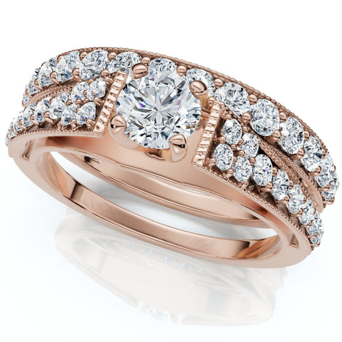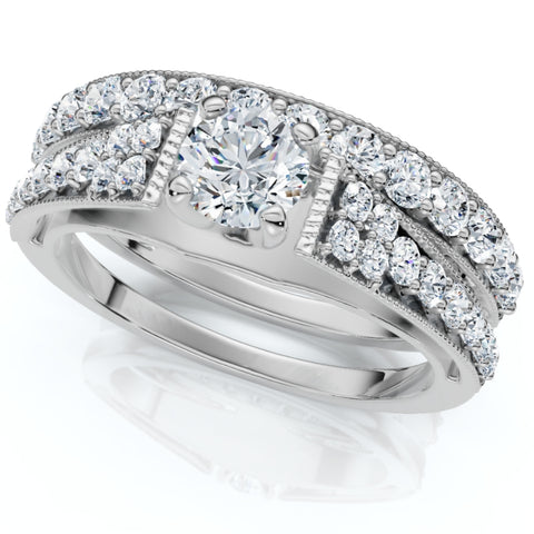 1Ct TW Vintage Engagement Wedding Ring Set Lab Grown 14k Gold