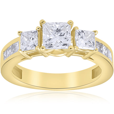 2 1/2 ct Princess Cut Diamond Engagement Ring 14k Yellow Gold