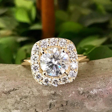 2Ct Diamond Cushion Halo Engagement Ring 14k Yellow Gold Lab Grown