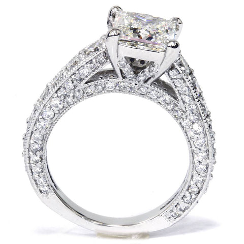 Certified 3 3/4ct Princess Cut Lab Grown Diamond Engagement Ring 14K White Gold