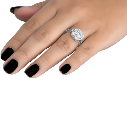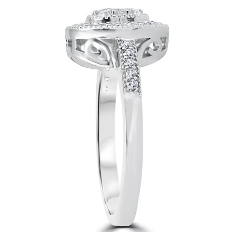 3/8Ct Vintage Natural Diamond Cushion Halo Shape Ring White Gold
