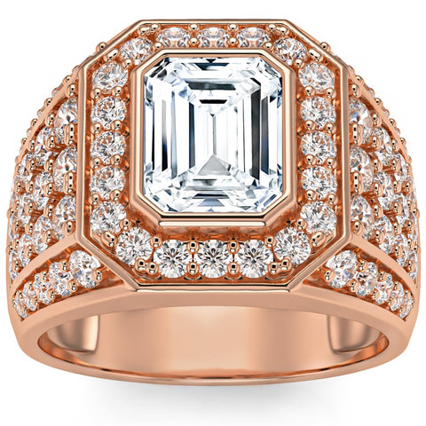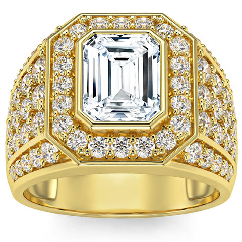 3Ct Emerald Cut Diamond Men's Ring in White, Yellow or Rose Gold Lab Grown