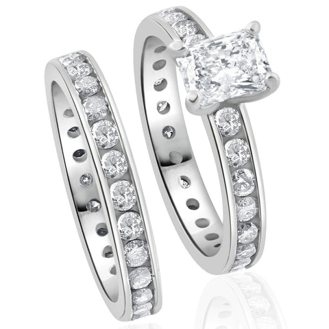 4Ct Radiant Cut Diamond Eternity Engagement Wedding Ring Set 14k Gold Lab Grown