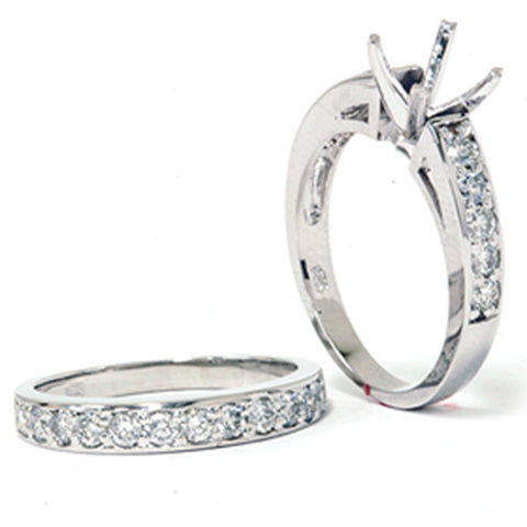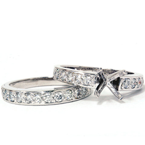 7/8ct Diamond Semi Mount Ring Set 14K White Gold
