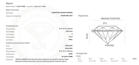 Certified 2CT Lab Grown Diamond Solitaire Engagement Ring 14k Yellow Gold