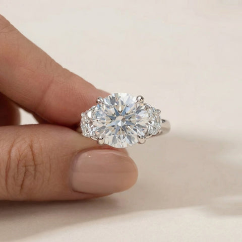 Certified 7Ct Diamond & Halfmoon Engagement Ring Lab Grown