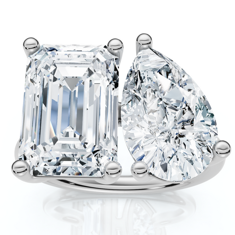 4.60Ct Pear & Emerald Toi et Moi Diamond Ring 14k Gold Lab Grown