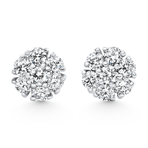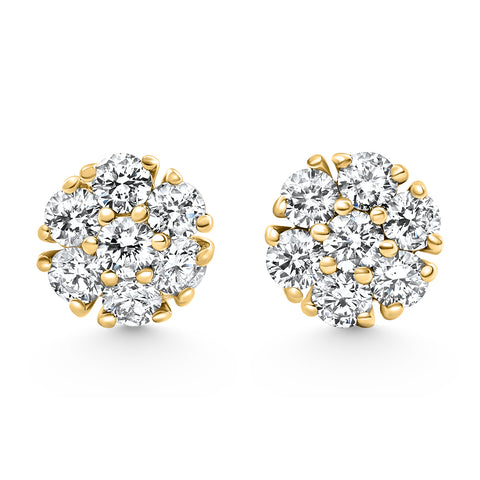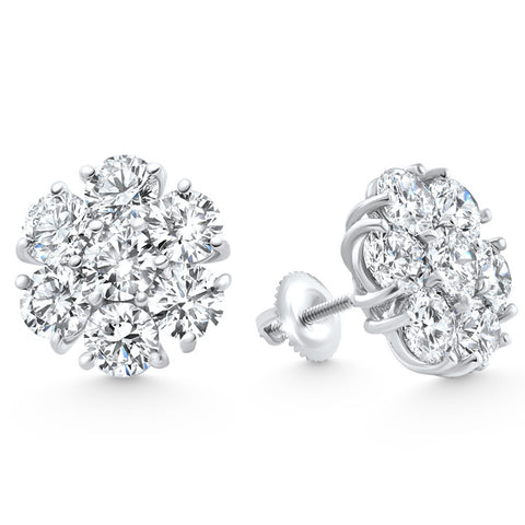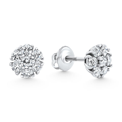 3/4Ct Diamond Cluster 7-Stone Pave Studs Screwback Earrings 14k Gold Lab Grown