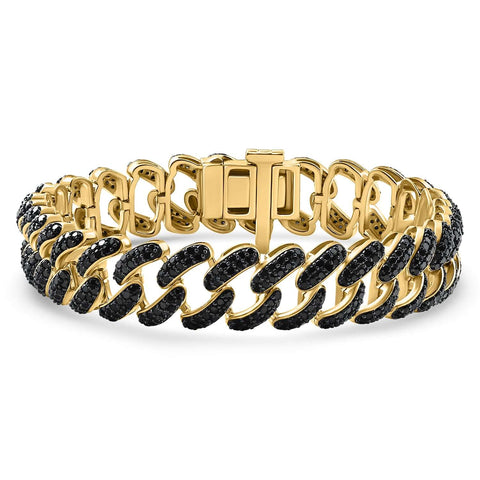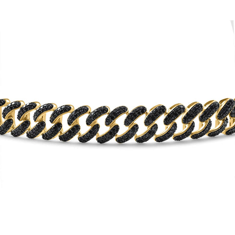 10.91Ct Black Diamond Men's 14mm Cuban Link Bracelet 52 Gram Yellow Gold 8.5"