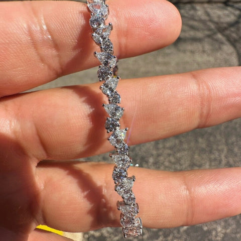 8Ct Pear & Round Diamond Tennis Bracelet 14k Gold 7" Lab Grown