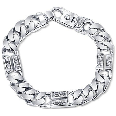 Men's Designer Diamond Figaro 14k Gold (85gram) or Platinum (159gram) 12mm Bracelet 8.5"
