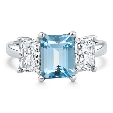 4.19Ct Aquamarine & Radiant Cut Diamond Ring 14k White Gold Lab Grown