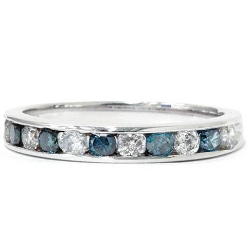 1/2ct Blue & White Diamond Channel Set Wedding Ring 14K White Gold