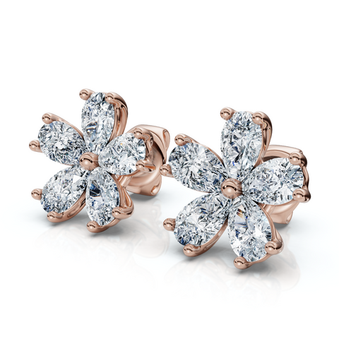 1 3/4Ct Diamond Pear Shape Flower Diamond Studs 14k Gold Earrings Lab Grown