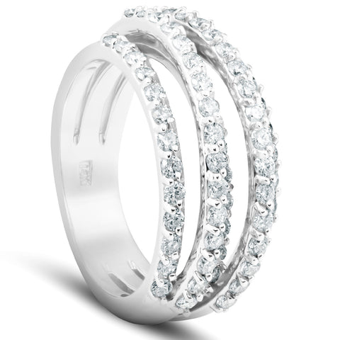 1 1/4 Ct Diamond Ring Womens Fashion Cocktail Multi Row Wide Band 14k White Gold