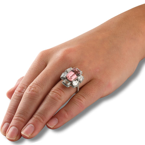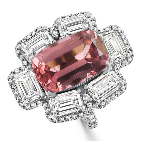 10.72Ct Tourmaline Diamond Ring 14k White Gold Lab Grown
