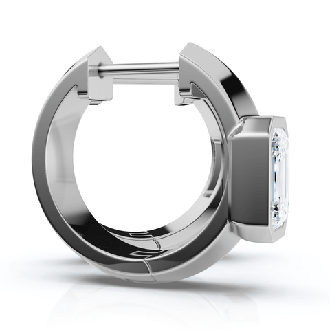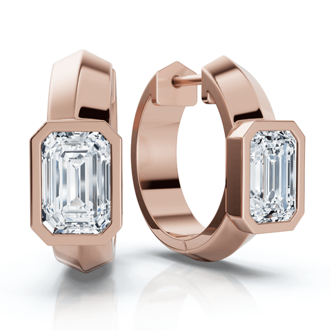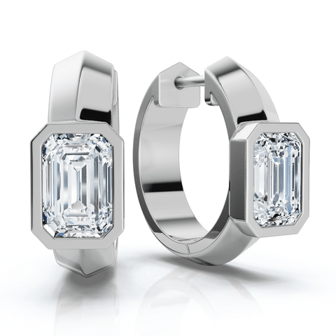 1 1/3Ct Emerald Cut Brava Bezel Diamond Hoops 5/8" Huggies 14k Gold Lab Grown
