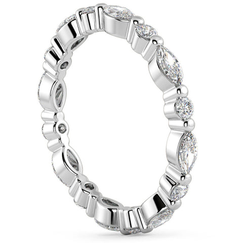 1Ct Marquise & Round Diamond Eternity Wedding Stackable Ring 14k Gold Lab Grown