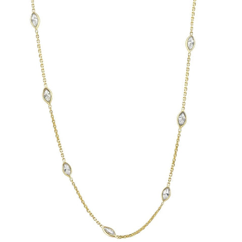 2 Ct Marquise Diamond Station Necklace in 14k White or Yellow Gold 18" Length