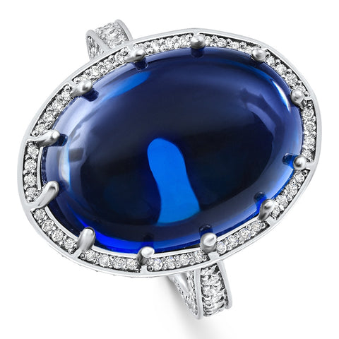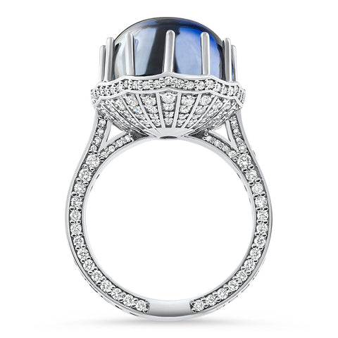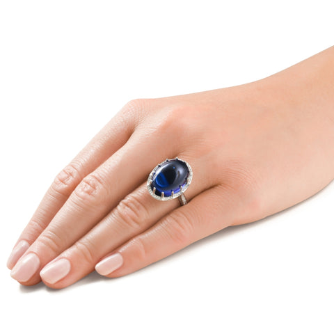 22.70Ct Ceylon Star Sapphire Diamond Heirloom Ring 14k White Gold Lab Grown