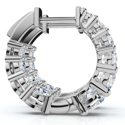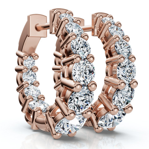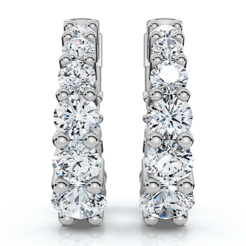 2Ct Graduated Round Diamond Hoops 14k Gold 5/8" Tall EF/VS