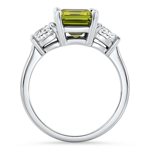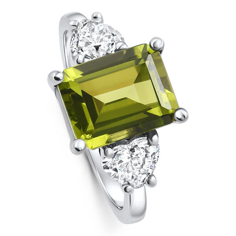 4.15Ct Emerald Peridot & Heart Diamond Ring 14k White Gold