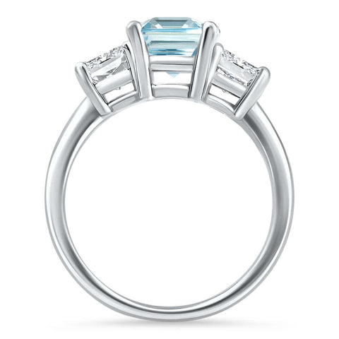 4.19Ct Aquamarine & Radiant Cut Diamond Ring 14k White Gold Lab Grown