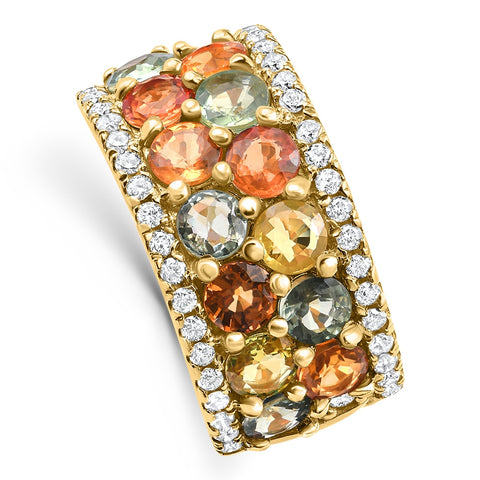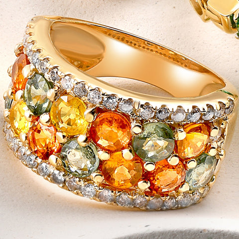 9Ct Emerald & Diamond Multi Row Diamond Anniversary Ring 14k Gold Lab Grown