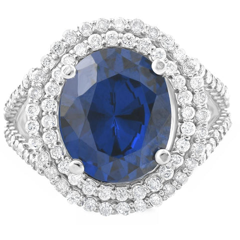 6 1/5 Ct Diamond Oval Blue Sapphire Diamond Double Halo Ring 10K White Gold