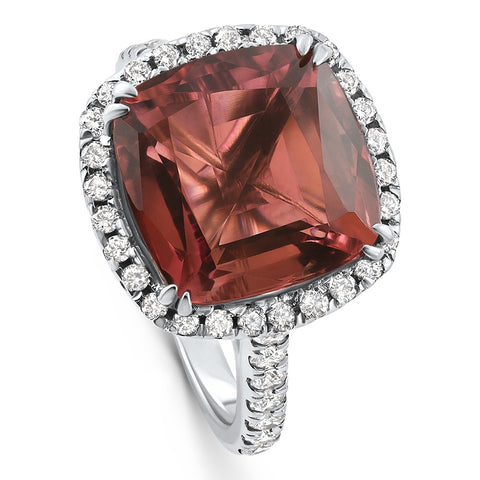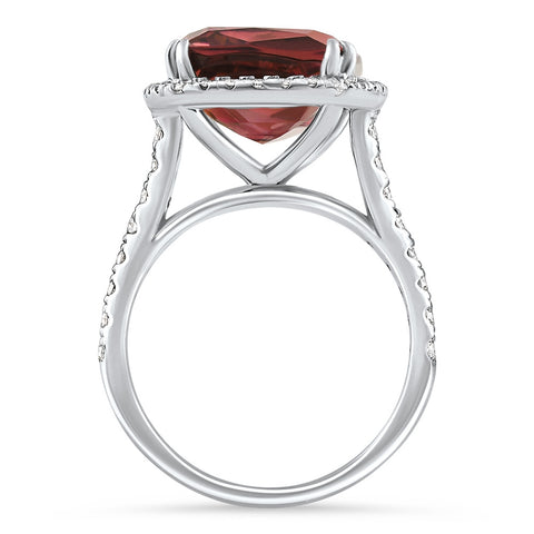6.84Ct Red Brown Cushion Tourmaline Diamond Halo Ring 14k White Gold Lab Grown