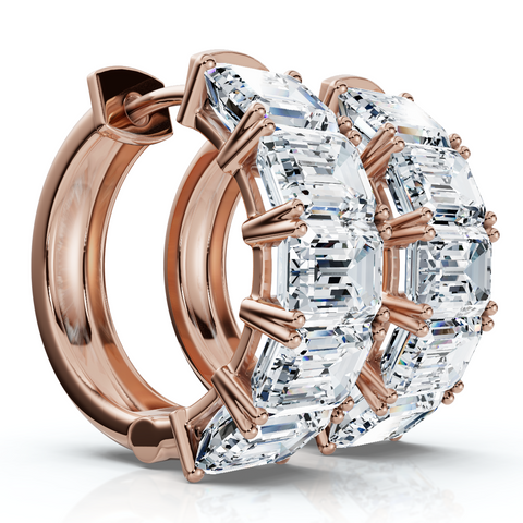 6Ct Emerald Cut Diamond Hoops 14k Gold Lab Grown Earrings