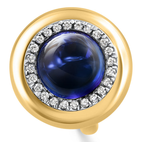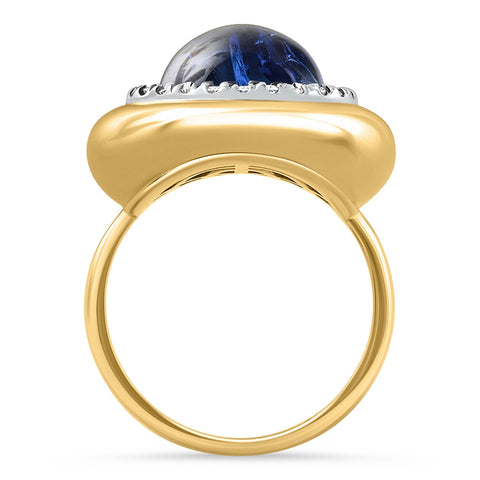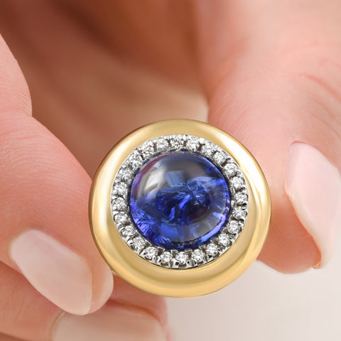 7.62Ct Natural Tanzanite & Lab Grown Diamond Button Ring 14k Yellow Gold