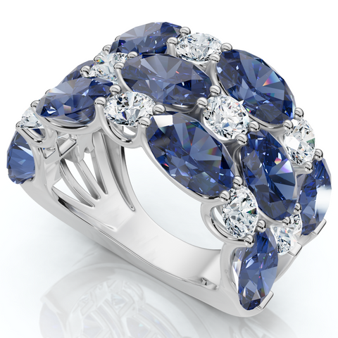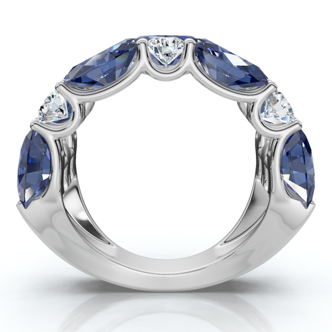8.50Ct Blue Sapphire Wide Anniversary Ring 14k Gold Lab Grown EF/VS